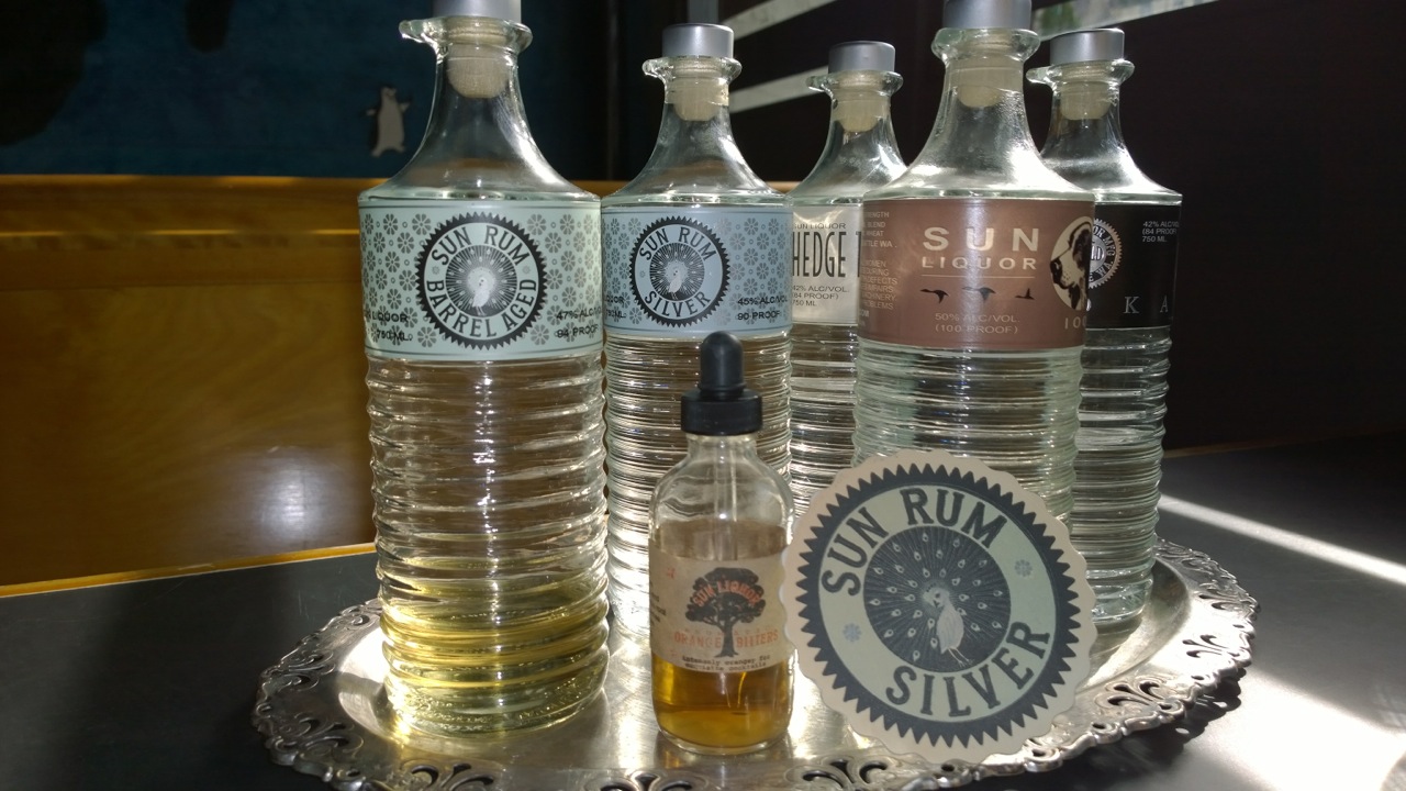 Taking the name of the old Chinese family laundry that occupied the original Top Pot café, Sun Liquor got started. The laws in Washington for craft distilling were changing in those days (2005) and subsequently, Michael hit the jackpot in 2008, securing a distillers license in the same space as a bar. Then he found the space in the picture above to make it work. For legal purposes, the two entities have different addresses. You should know the bar grub is very good!