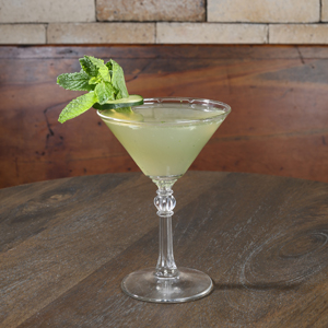 Method: Muddle mint and cucumber with simple syrup and lime juice in a shaker. Add vodka and shake. Strain into a chilled martini glass. Garnish with cucumber slice and mint leaves.