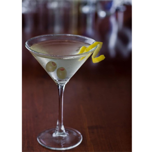 Method: Pour vodka, vermouth and olive brine in a mixing glass with ice and stir to combine. Rinse martini glass with Del Maguey Pechuga Mezcal. Pour mixture into glass and garnish with olives and a twist.